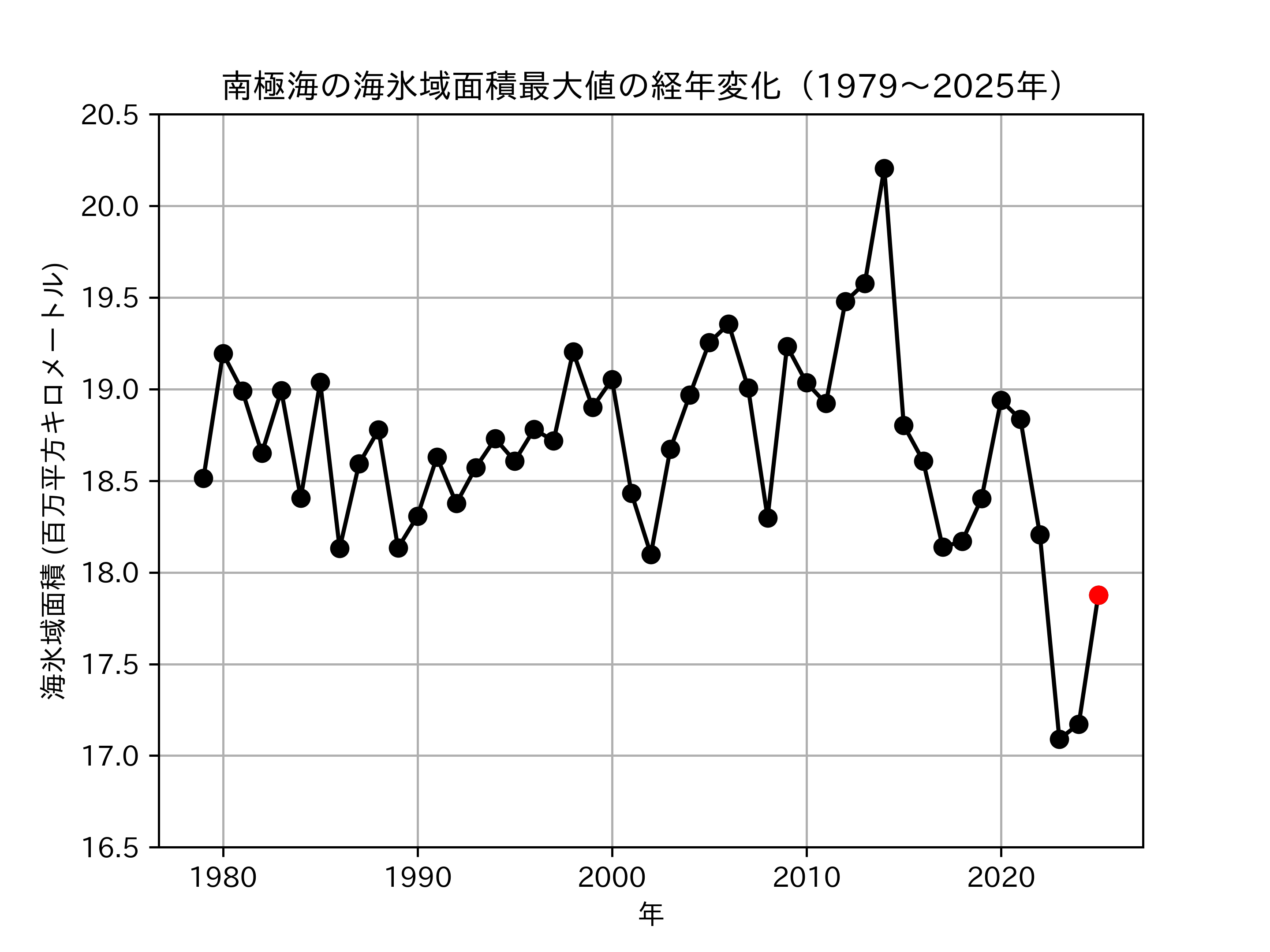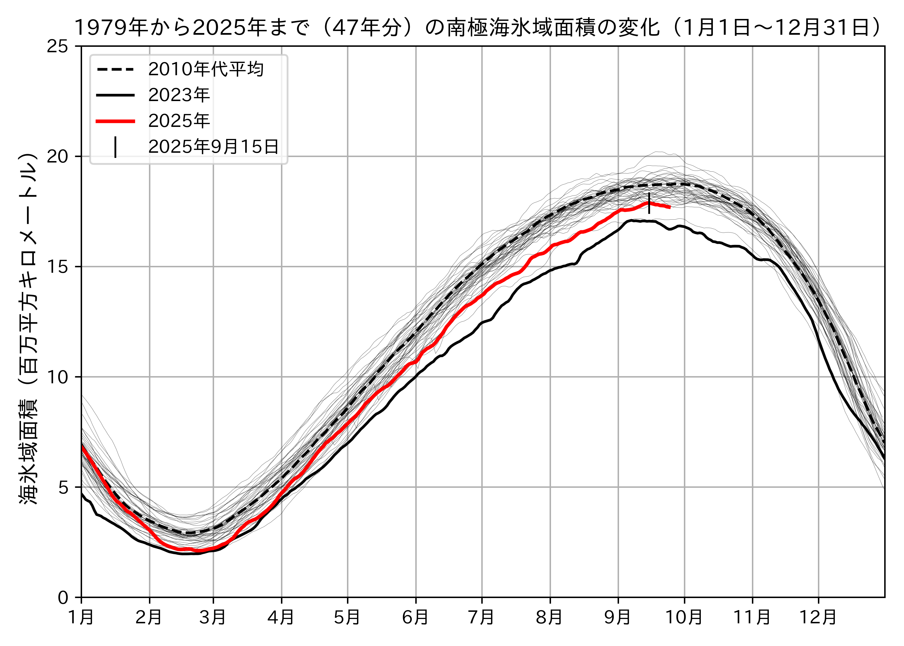 南極海の海氷域面積が2025年9月15日に年間最大値を記録