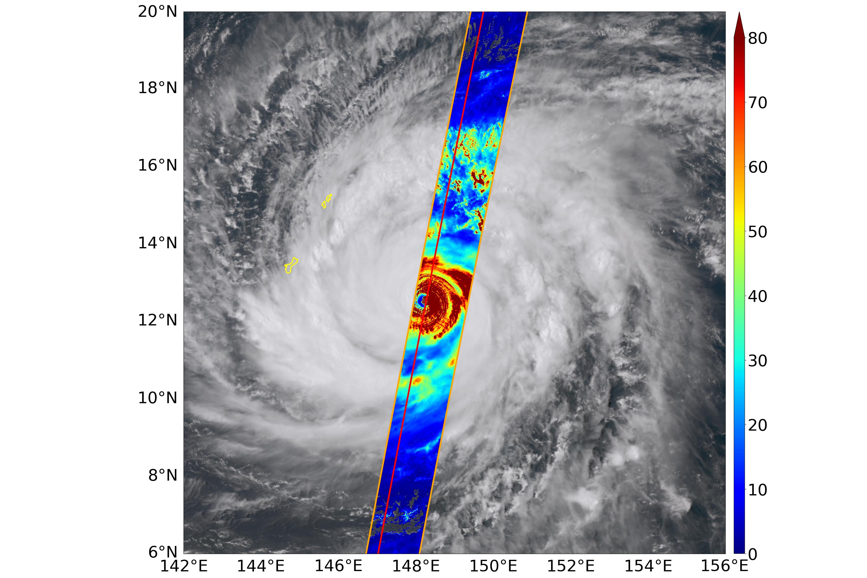 このように台風の断面構造とともに、内部の雲粒・雨粒の落下や上昇を宇宙から詳細に観測できることが、はくりゅうの強みです。今回のように発達した台風の中心部をちょうど通過して観測できたのは極めて稀なケースであり、台風の科学的理解を促進する貴重な観測事例となりました。