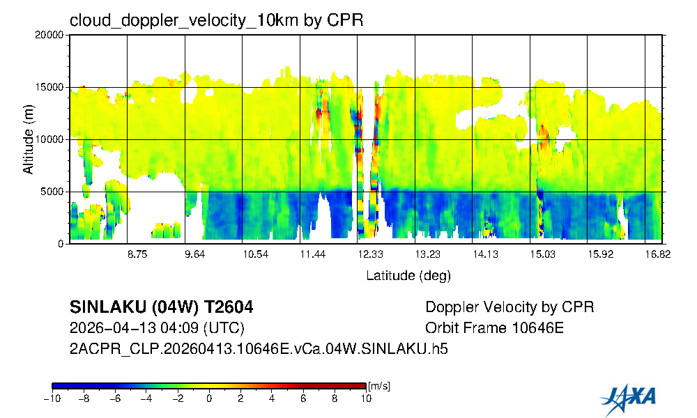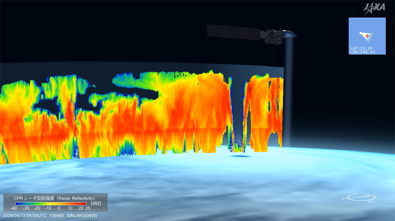 EarthCARE衛星(はくりゅう)は、2026年4月13日に太平洋上で発達した台風4号(Sinlaku: シンラコウ)の「眼」の直上を通過し、台風の雲の鉛直構造を詳細に観測しました。